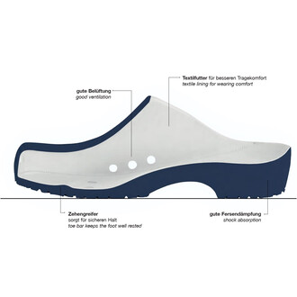 Chiroclogs Professional, aus leichtem Polyurethan in breiter und bequemer Ausführung. Verbessertes Fußklima durch abriebfestes Innenfutter, kein direkter Fußkontakt zum Polyurethan, wasch- und desinfizierbar bis 70°C, seitliche Belüftungslöcher, anatomisches Fußbett mit Zehengreifer sorgt für sicheren Halt, antistatisch Geprüft in Anlehnung an EN ISO 20347:2012 SRC